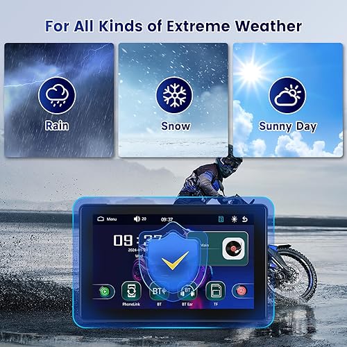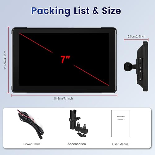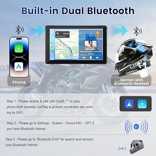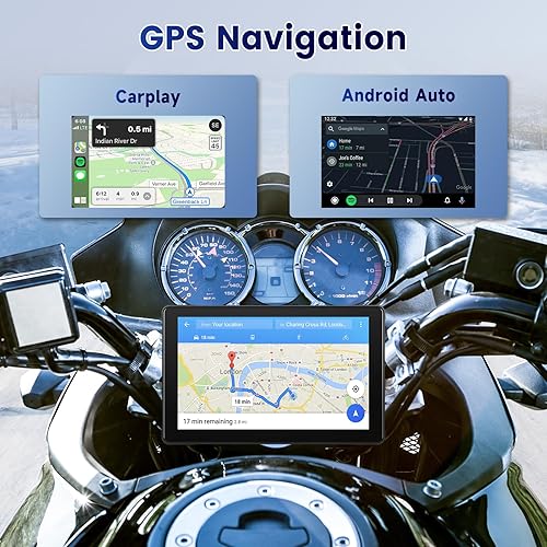 Schermo GPS per Moto CarPlay e Android Auto Wireless, Portatile HD Touch Screen Navigazione Impermeabile da 7 Pollici Schermo con Dual Bluetooth AirPlay Mirror Link EQ,USB/TF Display per Moto