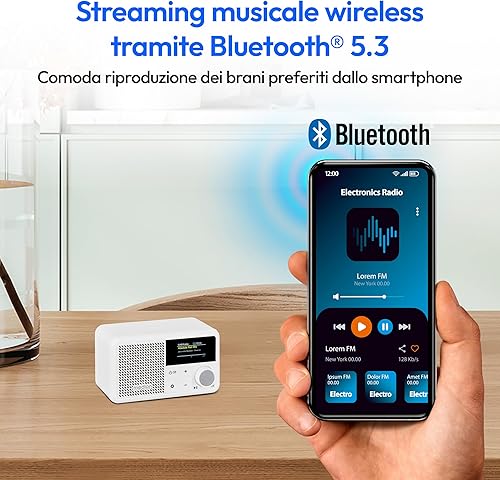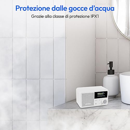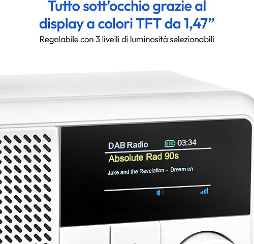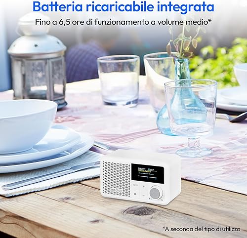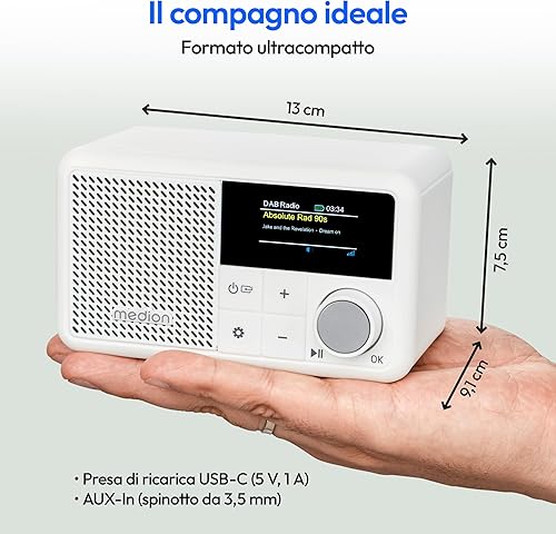 MEDION S66822 Mini radio DAB+ portatile con Bluetooth (batteria ricaricabile, display a colori oscurabile, antenna telescopica, sleep timer, sveglia, snooze, AUX, USB-C) bianco