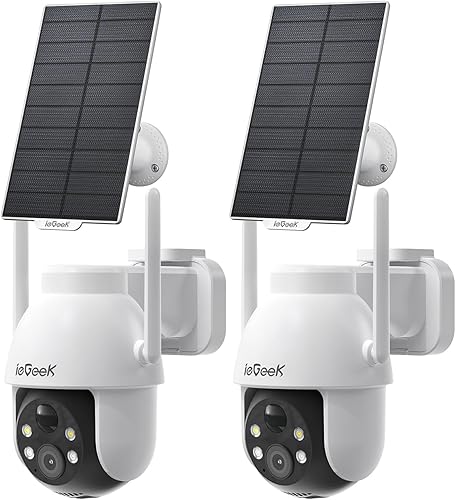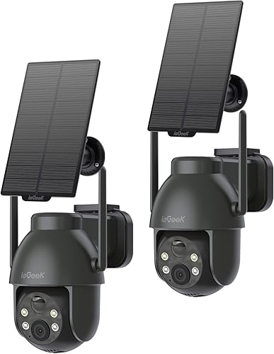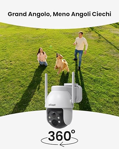 ieGeek 2K Telecamera Wi-Fi Esterno Senza Fili a Batteria, 360° PTZ Videocamera Sorveglianza con Pannello Solare, Rilevazione di Movimento PIR con Allarme, Visione Notturna a Colori, 2 Vie Audio, IP65