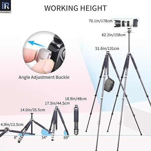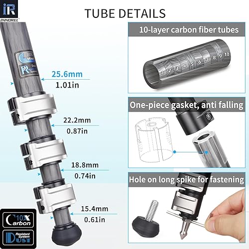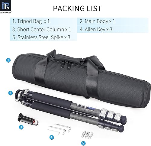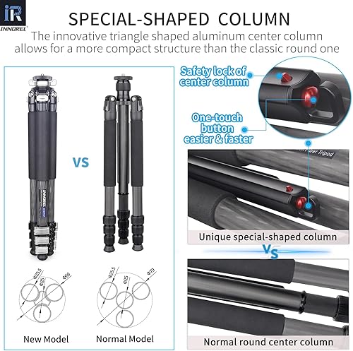 INNOREL Treppiede in fibra di carbonio GT254CF Treppiede portatile compatto professionale per fotocamera digitale DSLR Supporto per fotocamera da viaggio con colonna centrale a forma speciale Tubo da