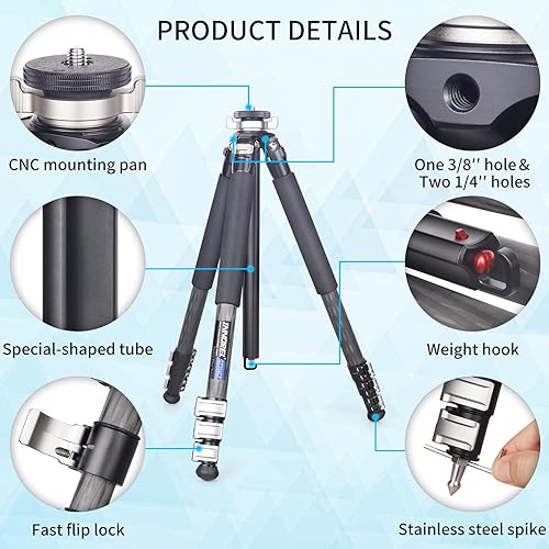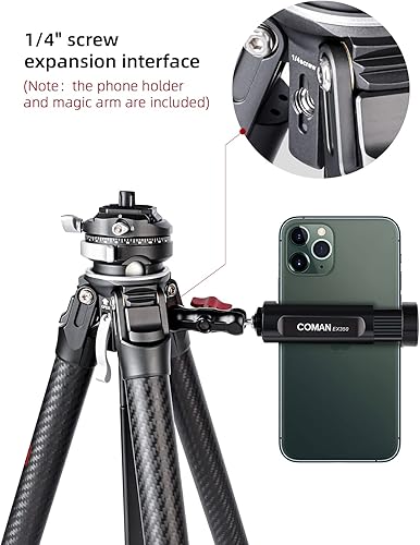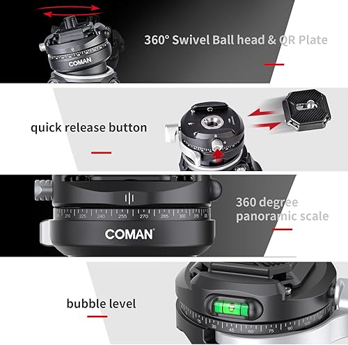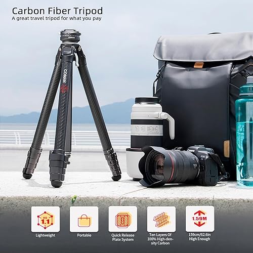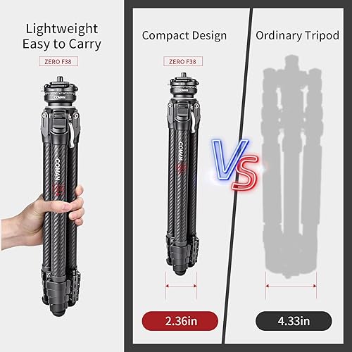 COMAN Zero F38 Carbon Fibre Camera Tripod with 360° Panoramic Ball Head and F38 Video Tripod for All DSRL Cameras, Tripod Lightweight with 15.3-156.7cm Height, Centre Column, carico massimo 18kg