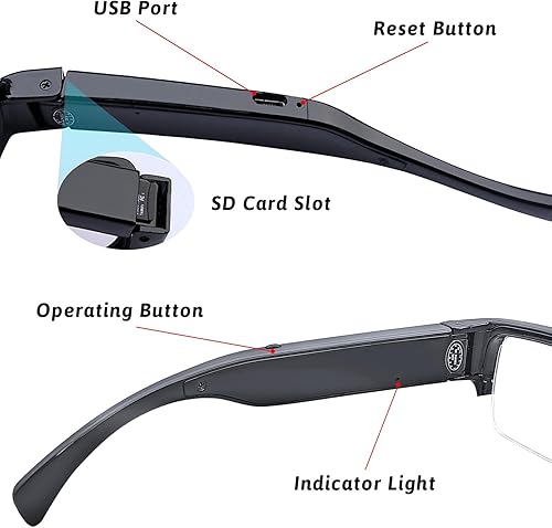 Occhiali con videocamera spia HD 1080p, alla moda, per guida, escursionismo, pesca, equitazione (scheda micro SD 32G inclusa)