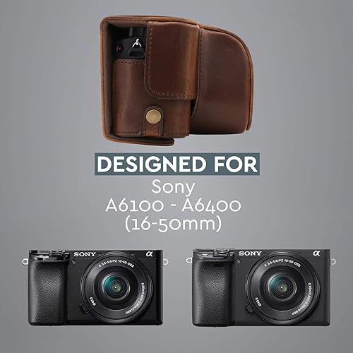 MegaGear Custodia in pelle per fotocamera compatibile con Sony Alpha A6100, A6400 (16-50 mm)