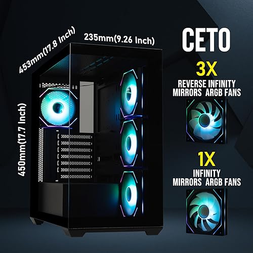 BitFenix CETO High Airflow PC Gaming Case Premium Edition Bianco Panoramico Vetro Temperato - Compatibile con scheda madre con connessione inversa - 4 ventole ARGB Infinity Mirroring (3X Reverse)