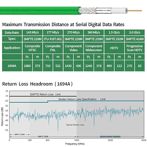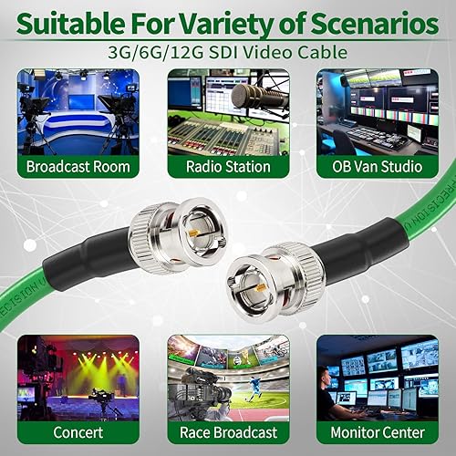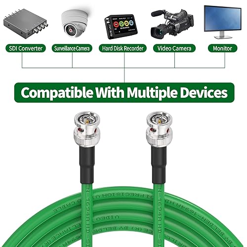 Superbat Cavo SDI 3G/6G/12G 5m Cavo Audio Digitale BNC Maschio a Maschio Belden 1694A 75 Ohm Verde per Telecamere e Attrezzature Video, Supporta HD-SDI/3G-SDI/4K/8K(2 pezzi)