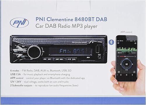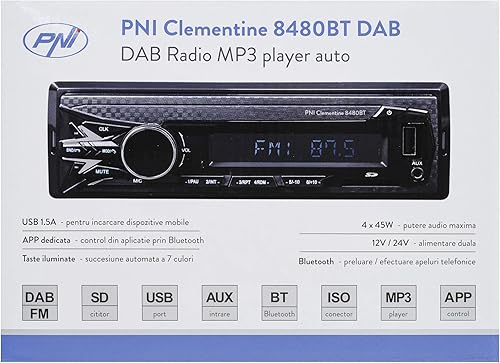 DAB Autoradio Lettore MP3 per auto PNI Clementine 8480BT 4x45w, 12 / 24V, 1 DIN, con SD, USB, AUX, RCA, Bluetooth e USB 1.5A per la ricarica del telefono