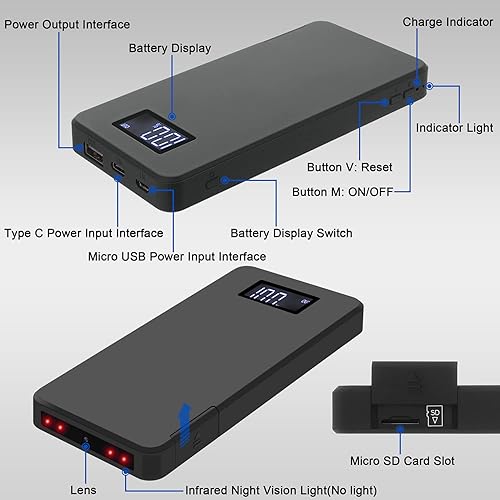 Microcamera Spia Telecamera Nascosta 4K con Capacità 10000mAh, Visione Notturna, Rilevamento del Movimento, Display Remoto in Tempo Reale, per Sorveglianza di Auto/Casa/Bambini