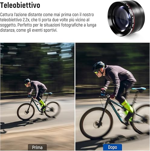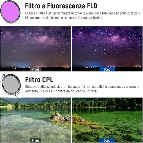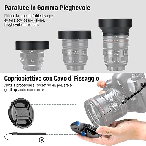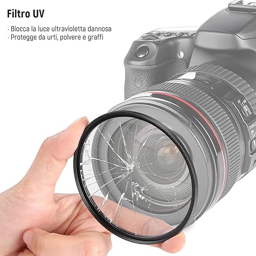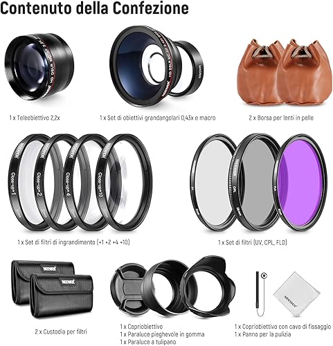 Neewer Filtri 58mm & Accessori per Obiettivo Canon Rebel EF-S 18-55mm: 0,43X Grandangolo, 2,2X Teleobiettivo, Filtri UV/CPL/FLD & Set Filtri Macro, Copriobiettivo, Parasole, Custodia ecc.