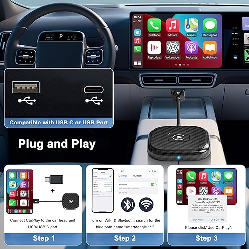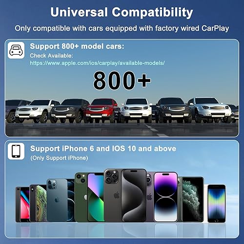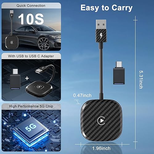 Adattatore CarPlay Wireless, CarPlay Wireless per iPhone Conversione di Fabbrica CarPlay a Wireless, Wireless CarPlay Compatibile con iPhone iOS 11+ e Auto con OEM Wired CarPlay