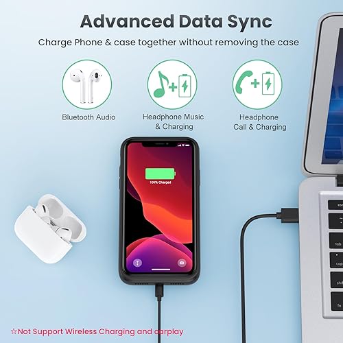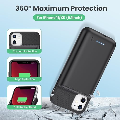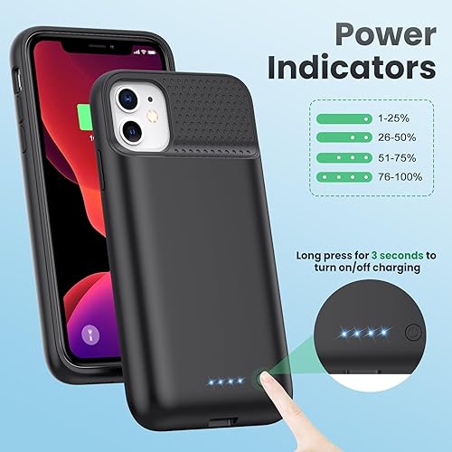 Feob Custodia con batteria per iPhone 11, aggiornata 6800 mAh, custodia di ricarica ricaricabile estesa protettiva portatile per iPhone 11, nero