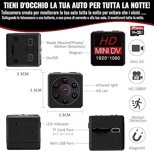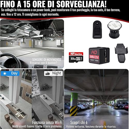 Mini Telecamera Spia Nascosta Con Immagini Full HD, Con Visione Notturna E Rilevamento Di Movimento - Funziona Senza Wifi, Include Scheda SD Da 32 GB, Per Parcheggi E Luoghi Senza Accesso A Internet