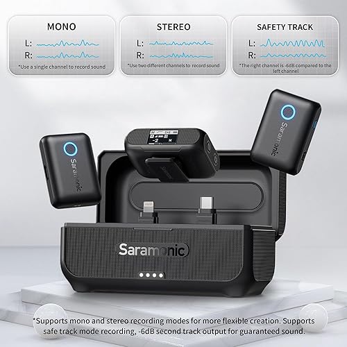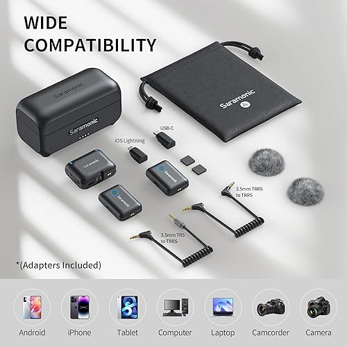Saramonic Blink500B2+ Lavalier Microfono Senza Fili Lavalier Radiomicrofono per iPhone 15 Android Computer Fotocamere, Mini Microfono per Interview Vlog Live Stream Podcast Video