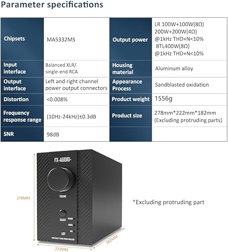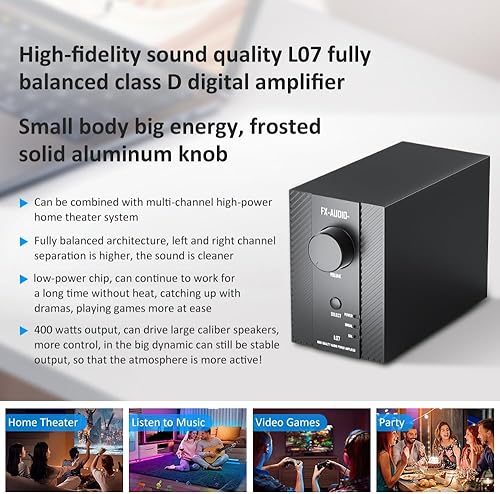 FX-Audio- L07 Stereo Audio Amplificatore 200W x2 MA5332MS 2 Canali Classe D Power Amplificatore Bridgeable BTL 400W Hi-Fi Fully Balanced Amplificatore per altoparlante passivo Bookshelf desktop Home