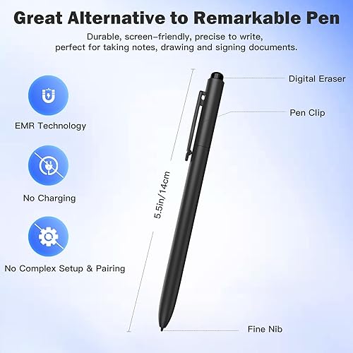 TiMOVO EMR Penna Stilo Compatibile con Remarkable 2, Penna Digitale EMR per Remarkable con Gomma, Inclinazione, Sensibilità 4096, Rifiuto del Palmo per Remarkable Marker/Kindle Scribe/Dispositivi EMR