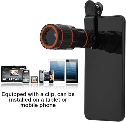 Clip On Lens Zoom,Kit Obiettivo Fotocamera Telefono,Obiettivo e Accessori per Telefono Cellulare,Teleobiettivo Professionale 12X Messa a Fuoco Telescopica Universale per