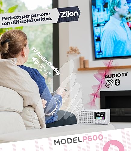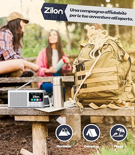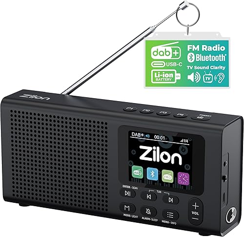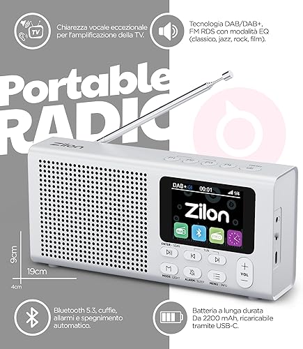 ZILON Radio Portatile DAB+ FM Digitale Piccola Bluetooth Ricaricabile con Batteria 2200 mAh Altoparlante Wireless Compatto per TV USB-C Schermo LCD a Colori Cucina Lavoro Campeggio Sveglia Orologio