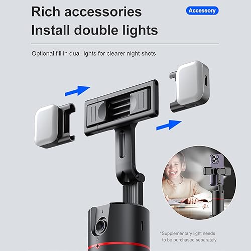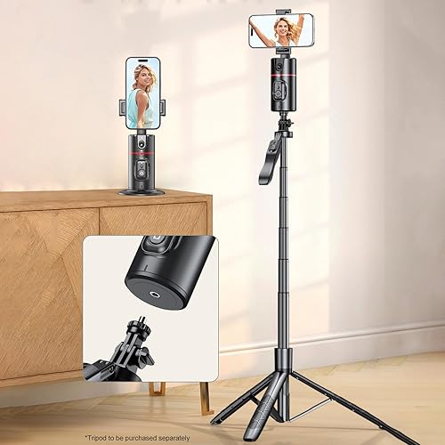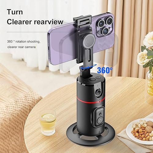 Andoer Treppiede per auto Face Tracking, intelligente supporto per cellulare con tracciamento del movimento, girevole a 360°, supporto per telefono intelligente con clip per telefono, vite da 1/4' per