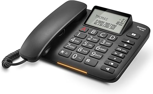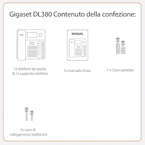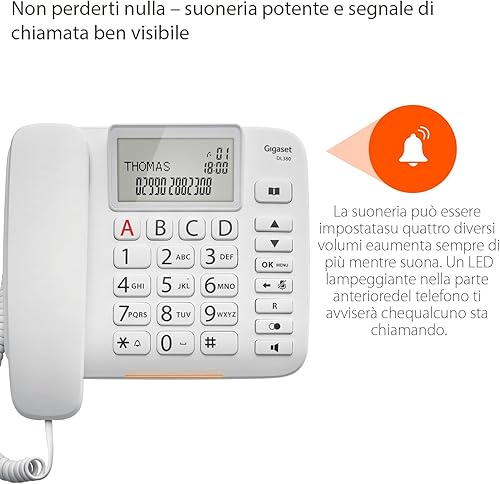 Gigaset DL380 - Un Telefono Facile da Usare con Tasti Grandi - 4 tasti di selezione diretta programmabili (A - D) - Rubrica, Nero [Versione Italiana]