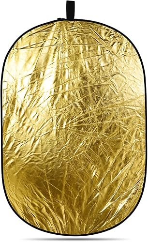 Neewer Riflettore di luce per fotografia 5 in 1 con kit di 6 morsetti per sfondo: portatile ovale 60 x 90 cm, riflettore pieghevole (argento traslucido, oro, bianco, nero) per studio fotografico