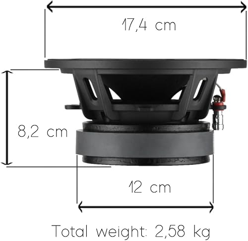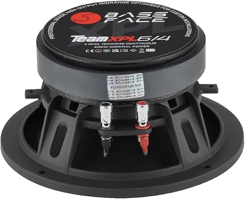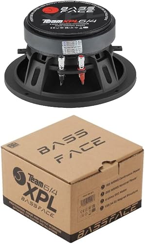 1 BASS FACE TEAM XPL6/4 midrange professionale da 16,5 cm 165 mm 6,5' di diametro 200 watt rms e 400 watt max, 4 ohm, sensibilità di 93,5 db, per auto, 1 pezzo