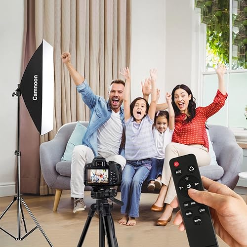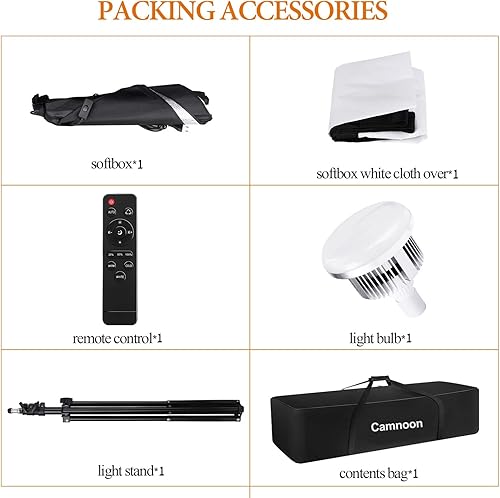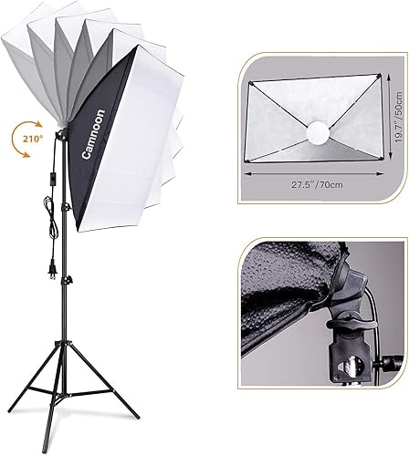 Softbox Fotografico Set, Camnoon Luci Set Studio Fotografico con 1x85W 3000K-6000K Luce LED a Temperatura Bi-colore, 1x50x70cm Softbox, 1x2M Stand per Luce, Borsa da Trasporto, per Ritratti/Video