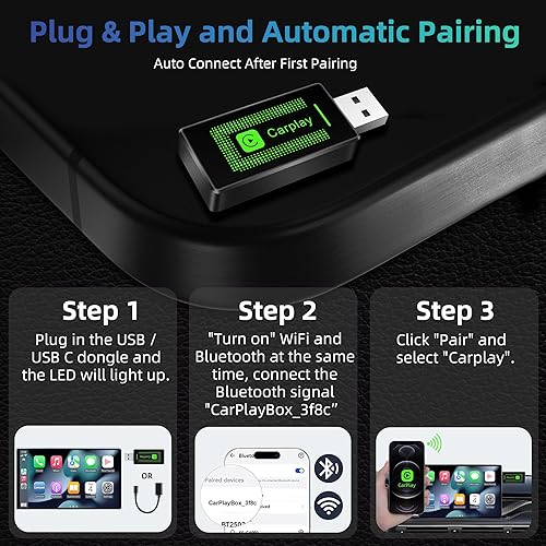 Lyssiefeel Wireless Carplay Adapter for iPhone,2024 Upgrade USB CarPlay Wireless Stick,Easy Plug & Play,Compatible with Cars from 2016 & iPhone iOS 10+ (CLZ121)