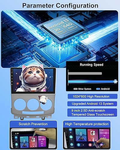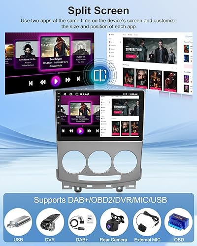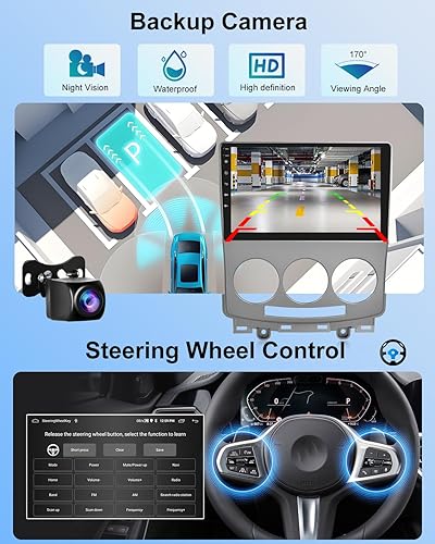 Autoradio 2+64G per Mazda 5 2005-2010 - Carplay senza fili e Android Auto - Stereo Android 13 da 9 pollici con WiFi EQ GPS Mirror Link FM RDS + Telecamera posteriore AHD e microfono