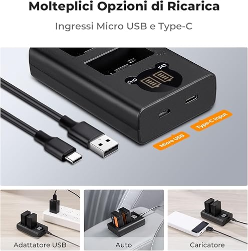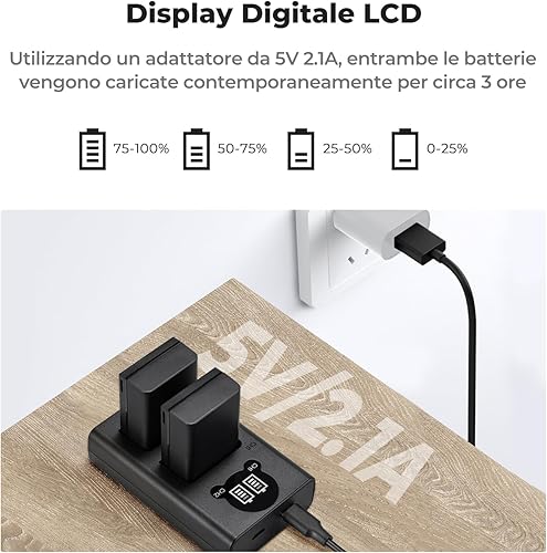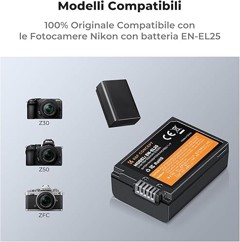 K&F Concept EN-EL25 Batteria di Ricambio per Fotocamera e Caricatore per Monitor LCD a Doppio Slot Compatibile con Nikon Z30 Z50 ZFC