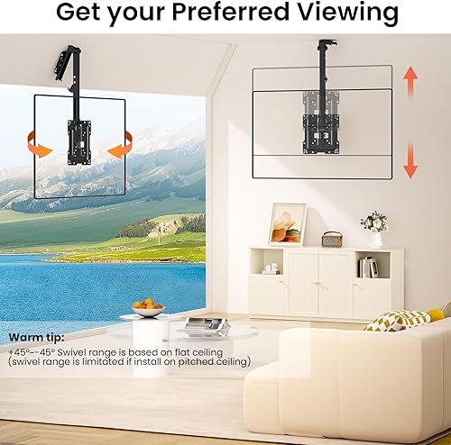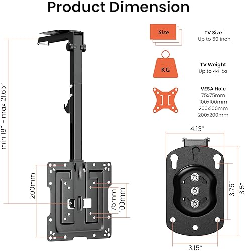PUTORSEN Supporto da soffitto per TV da 19-50 pollici, pieghevole, altezza regolabile, per tetti piani o inclinati, portata massima 20 kg, VESA 200 x 200 mm
