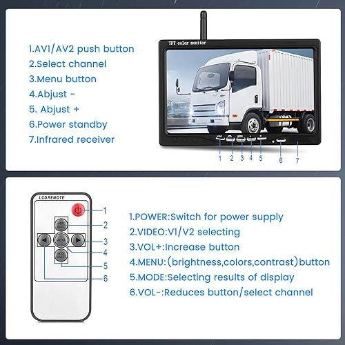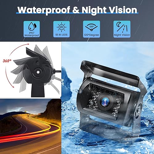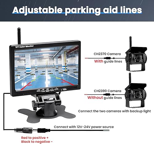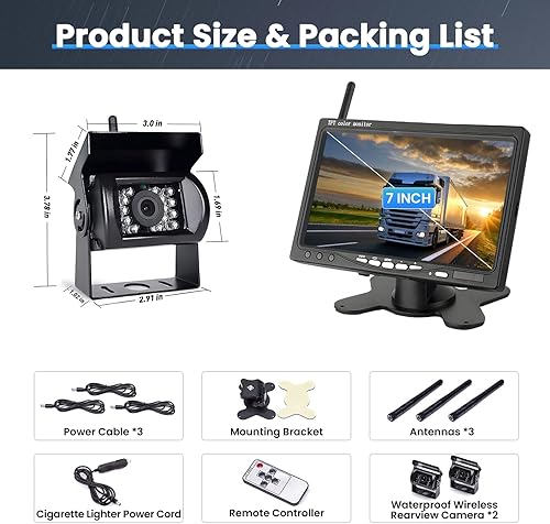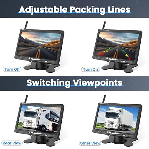 Ohradio Telecamera Retromarcia Wireless con Monitor da 7 Pollici Kit con 2 Posteriore Telecamera Wireless AHD Visione Notturna IP67 Impermeabile per Camion RV Camper DC 12-24V