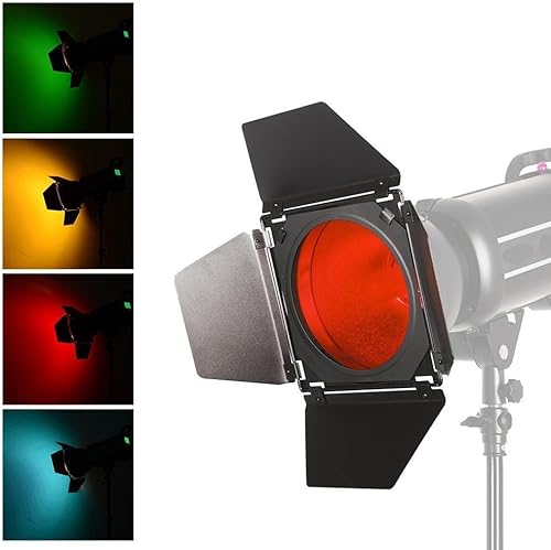 Yunchenghe BD-04 Barn Door Tordoor con griglia a nido d'ape e 4 filtri gel colorati (rosso giallo blu verde) per 7'riflettore standard