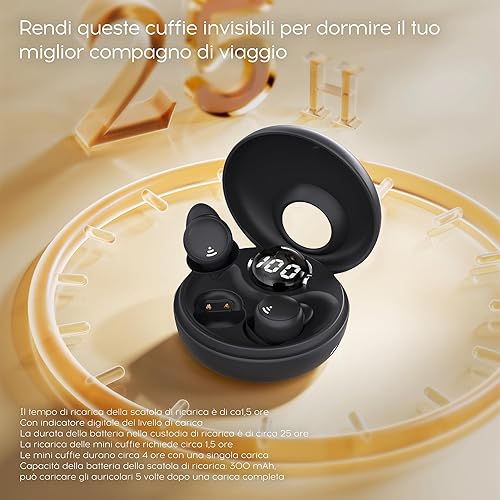 sunvito Cuffie per Dormire, Mini Auricolari Wireless Bluetooth 5.3 Auricolari per Dormire, Auricolari Nascosti con Display di Alimentazione per Esercizio, Lavoro, Escursionismo