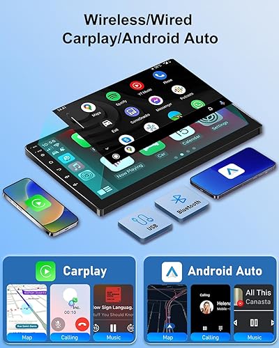 Senza Fili Autoradio,Wireless A-pple Carplay & Android Auto con Dash Cam Anteriore 2K,Telecamera di Backup 1080P, Portatile 9,26 Pollici Stereo Auto con Siri/Bluetooth/GPS/FM/AUX/Airplay/Scheda SD 64G