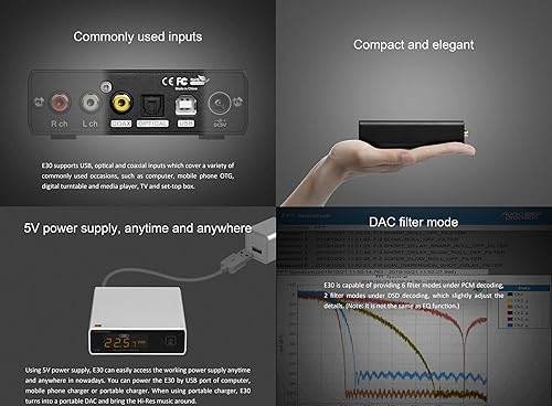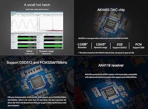 Topping E30 II HiFi DAC 2 x AK4493S Amplificatore in Modalità Diretta Decodifica per Ingressi USB/Coassiali/Opt Decodificatore Audio Digitale Stereo PCM 32bit 768kHz DSD512 Nativo Nero