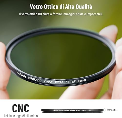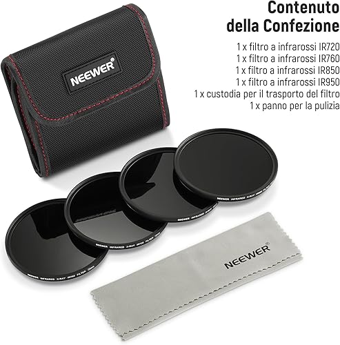 NEEWER Set di Filtri a Infrarossi 72mm, 4 Filtri IR per Raggi X IR720/IR760/IR850/IR950 con Custodia e Panno, Compatibile con Canon Nikon Sony Panasonic Fuji Kodak, le fotocamere DSLR Supportate IR