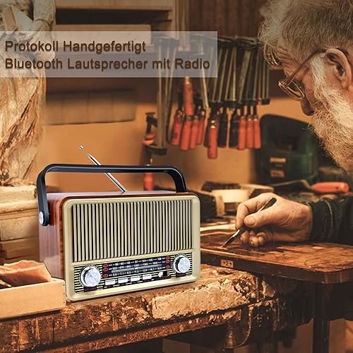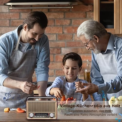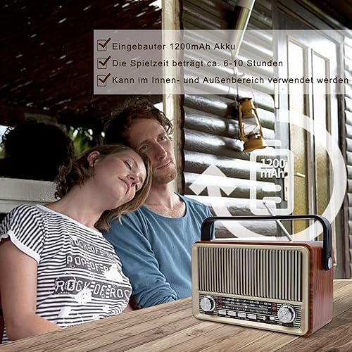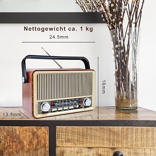 FM Radio Portatile Bluetooth 5.0: SENTASI Radio Vintage Retro con Batteria Ricaricabile da 1200 mAh,Radio Supporto AM/SW/USB/TF, Radio da Cucina Retrò per Home Office