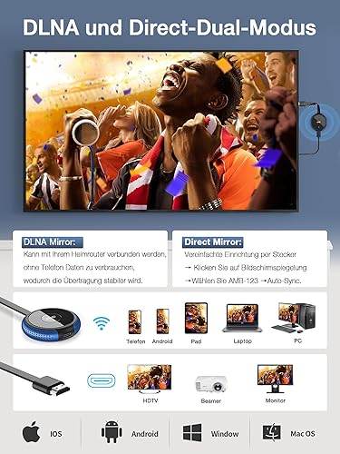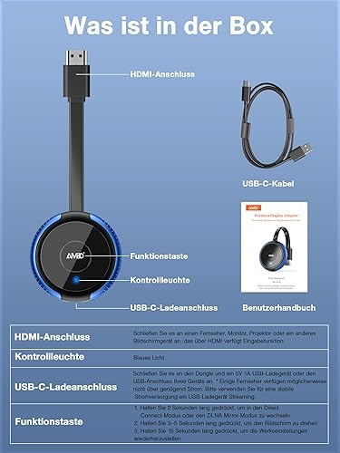 Adattatore display wireless AIMIBO 4K 5G - Film, programmi e TV in diretta Plug & Play da smartphone, tablet, laptop su qualsiasi TV - compatibile con i*OS, Android, Windows, Mac OS, Airplay, DLNA