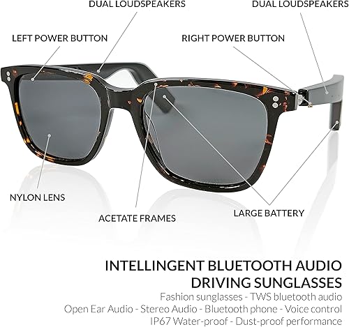 Occhiali bluetooth con speaker stereo e il microfono integrati | Occhiali da sole AUDIO Wireless, IP7 Impermeabili, Pairing automatico | Design UNISEX | Compatibilità universale | mod. XR (TURTLE mat)