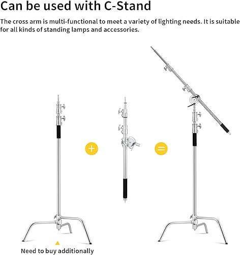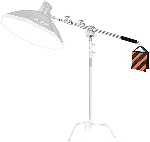Braccio allungabile in acciaio inox per treppiede leggero e treppiede C, da 3,6 piedi a 8,2 piedi Braccio regolabile con sacchetto di sabbia per Studio Softbox Reflector