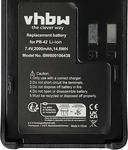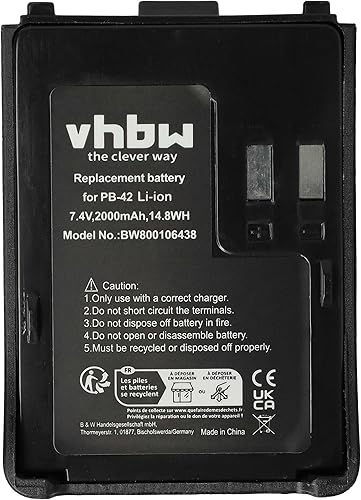 batteria compatibile con Kenwood TH-F6, TH-F6A, TH-F6E, TH-F7, TH-F7A, TH-F7E, TH-FTE radio (2000mAh, 7,4V, Li-Ion)