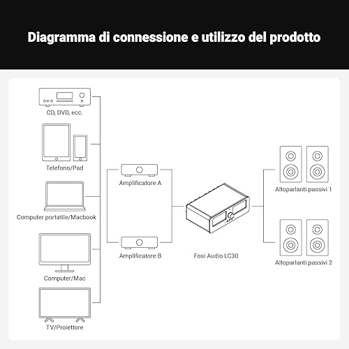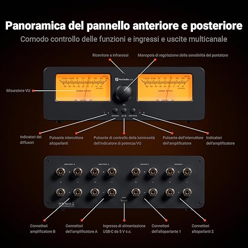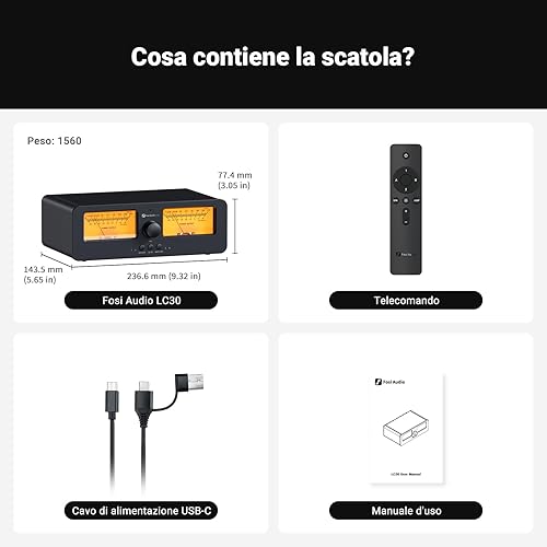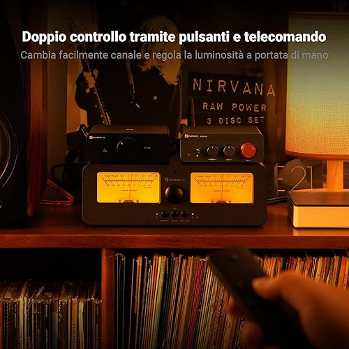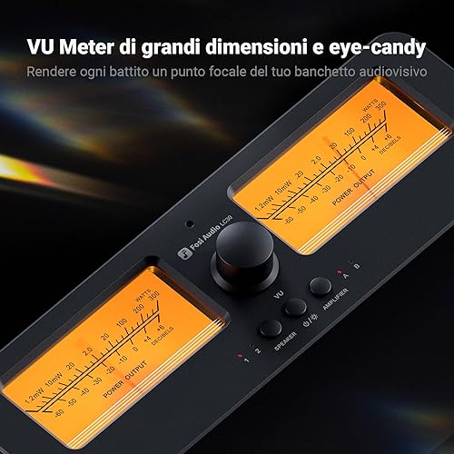 Fosi Audio LC30 Dual VU Meter Audio Visualizer, Commutatore 2 Ingressi 2 Uscite Vintage per Amplificatori Stereo ad Alta Potenza, Componente per Home Theater, Completo di Telecomando