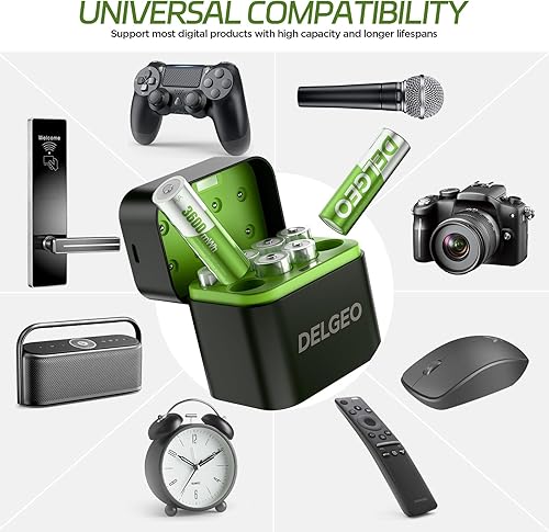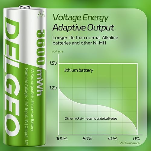 Batterie ricaricabili AA al litio, confezione da 8 con caricabatterie rapido 2,5 H, batterie al litio AA ad alta capacità da 1,5 V 3600 mWh, batteria agli ioni di litio a uscita costante con 2000
