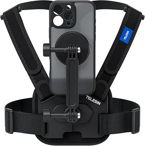 TELESIN POV Pettorina Telefono Imbracatura da Petto, Cellulare Chesty Accessori Compatibile con iPhone 16 Pro MAX, Supporto con Imbracatura a Cinghia con MagSafe, Super Stabile