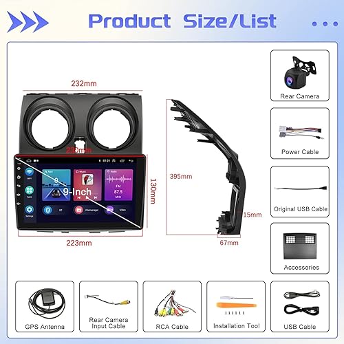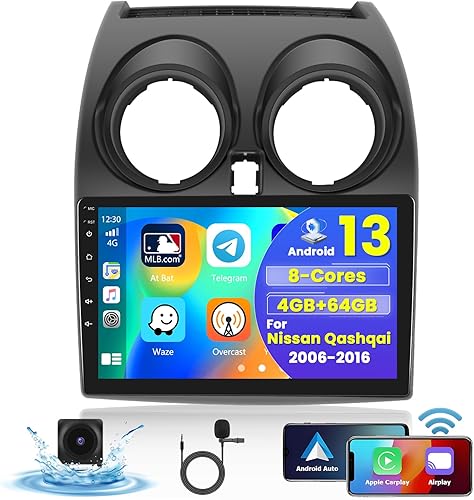 [8 Core 4G+64G] Hikity Radio Auto per Nissan Qashqai J10 2006-2016 Wireless Carplay Android Auto Android Autoradio 9 Pollici Stereo Auto con GPS 32EQ WIFI Bluetooth SWC MIC Telecamera Posteriore