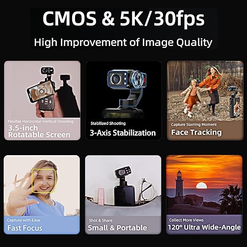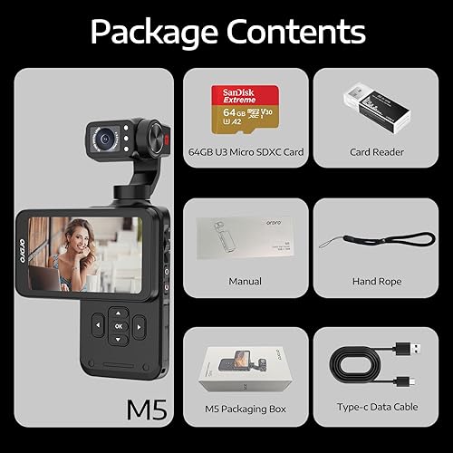 ORDRO Fotocamera Vlogging M5 5K con stabilizzatore a 3 assi a 120° Ultra Wide Angle IR Night Vision 3.5'' Rotatable IPS Screen, Small Vlog Camera with 64G Memory Card for Photography YouTube TikTok