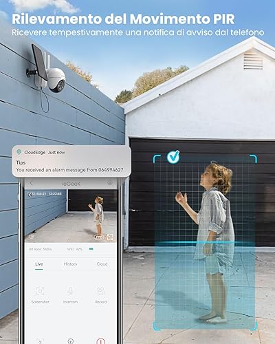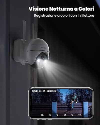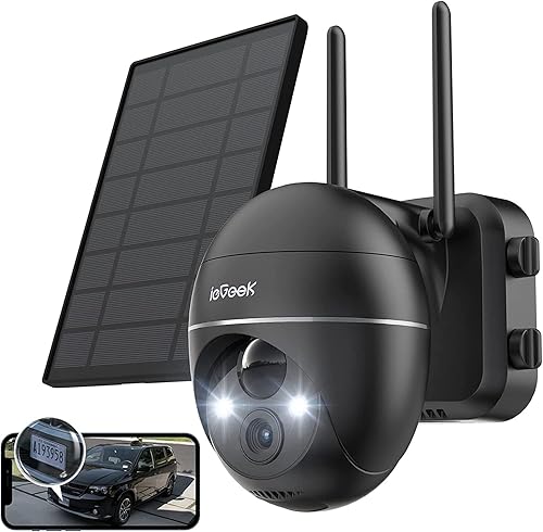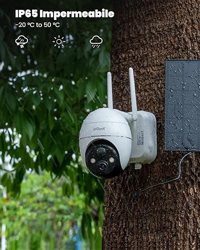 ieGeek 360° PTZ Telecamera Wi-Fi Esterno con Batteria Senza Fili, 2K Videocamera Sorveglianza con Pannello Solare, Rilevazione PIR, Visione Notturna, Impermeabile IP65, Audio a 2 Vie