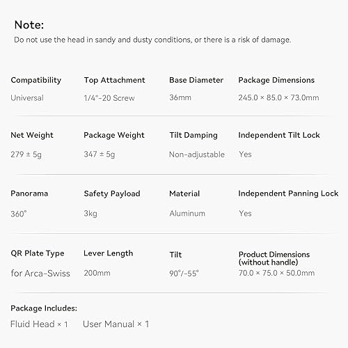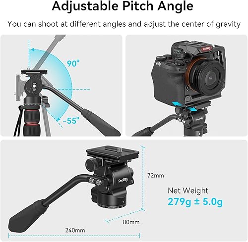 SMALLRIG Treppiede Testa Fluida Testa Pan-Tilt CH10 con Piastra a Sgancio Rapido per Arca Swiss, Carico Utile 3KG per Videocamere Compatte e Fotocamere DSLR - 3259B