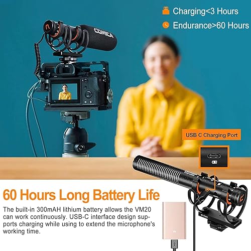 COMICA VM20 Microfono a Fucile con Display OLED Power, Microfono Video Direzionale Super Cardioide per DSLR Canon Nikon Sony e Smartphone (Interfaccia da 3,5 mm)