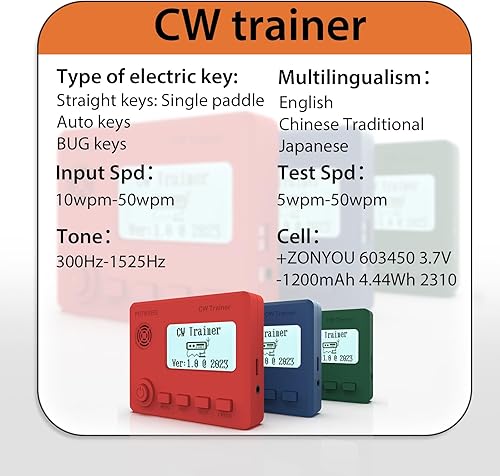 Moore - Mini CW Trainer con display, codice Simo Wales, radio a onde corte, telegrafo, chiave per imparare le chiavi dell'auto, per esercitarsi con telegrafo, con cavo di ricarica (rosso