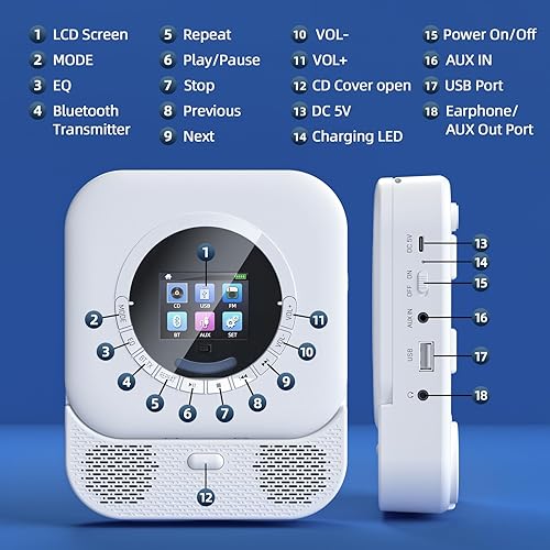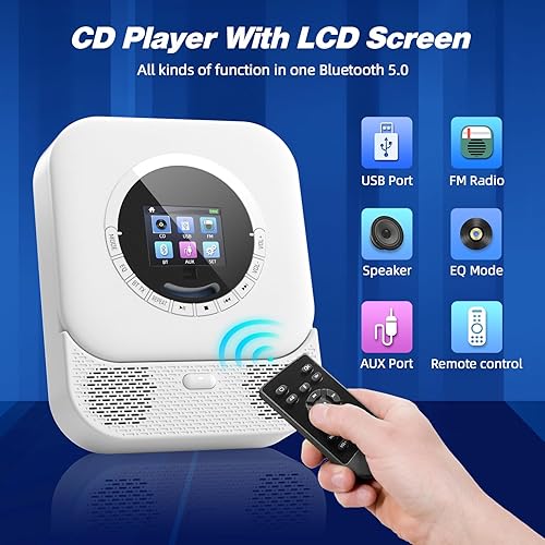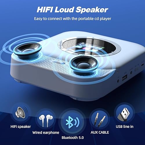 Arafuna Lettore CD Portatile con Ricevitore e Trasmettitore Bluetooth, Lettore CD Portatile con Altoparlanti HiFi, Lettore CD Personale Display LED Integrato, Radio Lettore CD (White)